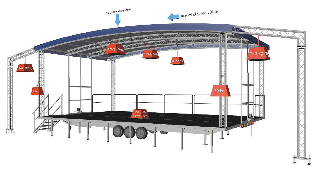 | Besonderheiten | Überdachte Bühne rückseitig mit Treppe |